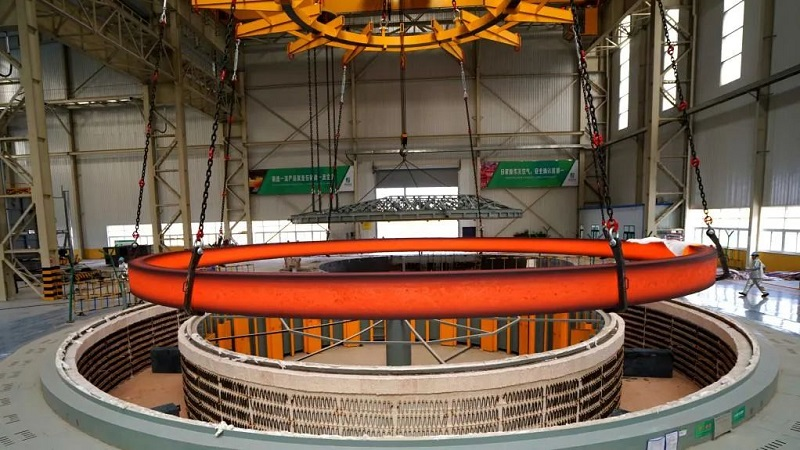 据介绍,这个由伊莱特能源装备股份有限公司制造的核电支承环,近50米长的圆周一体成形,没有焊缝使其更加安全,可承载7000吨重量,安装到位后60年不用更换。